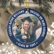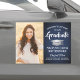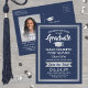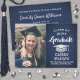 Compartilhe as notícias alegres de uma próxima festa de formatura com marinho de fotos azul e folha prateada falso, salve os convites de cartão postal. A imagem e o texto deste modelo são simples de personalizar com o nome do formando, o ano de aula e outros detalhes do lançamento da sua escolha. O design apresenta uma elegante fronteira listrada, caligrafia na moda moderna, tipografia clássica de vintage e uma foto favorita, como uma fotografia de mais velho ou uma imagem da cerimônia de inauguração. Por favor, note que prata é cor verde de cinza impressa, não papel metálico. Estes cartões de na moda são uma maneira elegante de compartilhar uma celebração especial de dia com a família e os amigos. Parabéns ao formando!