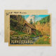 Cartão postal de Salve A Data da Pensilvânia vintage em um estilo retrô divertido de meados do século. Ele apresenta uma paisagem natural de madeira rústica com uma cabana de madeira e moinho de roda d'água, e um riacho bonito com folhas de outono para um clima de outono ou final de verão. Este cartão postal de Salve A Data da Pensilvânia será perfeito para um casamento no campo ou um casamento na natureza e de camping.
