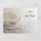 Anuncie seus próximos núpcias com o clássico cartão-postal Pérolas Brancas, Anel de Diamante e Renda Azul de Casamento Salve a Data. Este elegante cartão-postal personalizado de casamento apresenta uma fotografia de um colar de pérolas brancas e um anel de noivado de diamante com um lenço de linho azul e branco vintage.