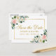 Cartão Postal de Noivado Salve a Data em Aquarela Floral Rosa Branco Dourado - Texto Dourado