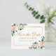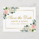 Cartão Postal De Anúncio Pêssego Floral Dourado Salve a Data em Aquarela