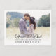 PixDezines "salve nossa data" em fontes de script de rico clássico e suas fotos de noivado em frente e atrás de cartões postais. Adicione a cor de fundo. Copyright © 2008-2016 PixDezines.com™ e PixDezines™ em zazzle.com. Todos os direitos reservados.