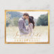 PixDezines faux gold "save our date" (salvar nossa data), fonte de script de rico clássico e suas fotos de noivado em frente e atrás de cartões postais. Adicione a cor de fundo. Copyright © 2008-2016 PixDezines.com™ e PixDezines™ em zazzle.com. Todos os direitos reservados.