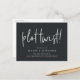 Need to change your wedding date? Notify guests with this modern and lighthearted postcard featuring "plot twist!" in faux silver foil handwritten lettering on a rich, soft black background. Personalize with your names and new wedding date beneath in white lettering.