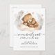Um adorável ursinho de pelúcia adormecido com anúncio de gravidez de balão com a expressão: "podemos esperar muito". Um estilo giro de tendências para o seu grande anúncio. Tipo de serifa moderno contrastado com tipografia de script.