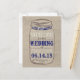 Cartão Postal De Anúncio Pote de Pedra Rústico Save the Date Azul Branco