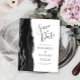 Este elegante e moderno salve a data do cartão postal apresenta uma cor d'água preta, borda agitada com falso brilho prateado. O texto personalizável é uma cinza de carvão em um fundo branco. O verso repete as informações, juntamente com um endereço de retorno personalizável.