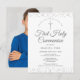Um convite elegante de Primeira Comunhão para salvar a data, apresentando delicado brilho prateado. Você pode personalizar com os detalhes da sua celebração especial em texto prateado elegante e adicionar uma foto especial no verso. Criado por Thisisnotme©