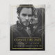 Anuncie o adiamento, cancelamento do seu casamento e novos planos com este design personalizado com uma elegante, moderna e simples mudança de data no cartão postal com foto, apresentando uma tipografia serifada moderna e discreta com efeito dourado falso na frente e um modelo de cartão postal no verso.