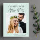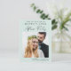 Elegante cartão postal de save the date em verde hortelã claro para recepção de casamento pós-fuga ou menor. A frente apresenta a foto do seu casamento e "Save The Date Para Nossa Festa de Felizes Para Sempre" em tipografia simples e uma fonte moderna. Abaixo da foto, adicione seus primeiros nomes e data da recepção. No verso, personalize sua mensagem de save the date com mais detalhes e adicione seus nomes de casados em uma fonte com aparência de assinatura.