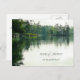 Lago montanhês russo salva o cartão postal com abstrato de imagem de um corpo calmo de água com pequenas ondulações superficiais num dia com céus sobre-moldados; reflexo de árvores distantes, verdes e estruturas rochosas pode ser visto na superfície da água | criado da minha própria fotografia pessoal e melhorado digitalmente com um sutil efeito de aquarela | parte da Coleção de Casamentos Russos do Lago Montanha por katz_d_zynes >> https://www.zazzle.com/collections/119499271518309609