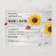 Lindos convites de flores vermelhas de rosa e girassóis amarelos para salvar a data que foram criados em um modelo de cartão postal simples e fácil de usar, no qual você pode inserir sua própria foto. Esses convites de salvar a data com foto são pintados à mão por Raphaela Wilson e ilustram rosas vermelhas profundas aquareladas juntamente com girassóis amarelos dourados dentro de um jarro de Mason brilhando com luzes de corda elegantes. Substitua o espaço reservado para a imagem pela sua própria foto no quadro dourado e laço de juta marrom amarrado em volta do vidro - e se preferir nenhuma foto, simplesmente troque o jarro de Mason pela versão alternativa (isso pode ser visto se você personalizar ainda mais o design). Troque a caligrafia cursiva e outros estilos de fonte, se desejar, e revele camadas de arte adicionais com outros tipos de madeira de celeiro vintage além do cinza (azul-marinho, marrom rico e branco disponíveis). Se rosas borgonha e girassóis com jarros de Mason fazem parte da decoração do seu casamento, esses cartões-postais personalizados podem complementar-se lindamente com temas de casamento de verão, outono ou inverno! Re-posicione as luzes de corda, pétalas de flores e muito mais... Há muitas opções flexíveis com este modelo. Categoria: convites rústicos para salvar a data; modelos de convites para salvar a data; e cartões-postais rústicos para salvar a data. Paleta de