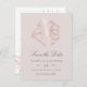 Avise os convidados do seu próximo destino, praia ou casamento na ilha tropical com este belo verão, salve os cartões postais com uma ilustração falsa de flor de hibisco de folha de rosa com folha de ouro em um fundo cor-de-rosa pincelado e pastel macio. O roteiro de cinzas Elegante e a inscrição em bloco exibem seus detalhes de casamento (nomes, data de casamento e local); use o lado inverso para compartilhar detalhes adicionais, como o site do casamento. Cartões postais inversos para mostrar os detalhes adicionais da data, incluindo o site do casamento, com seu endereço de retorno e espaço para endereçamento de destinatário, acentuados com dois conchas de ouro adicionais.