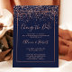 Cartão Postal De Anúncio Rosa gold confetti marinho azul alterar a data