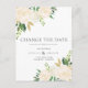 Anuncie a nova data do seu casamento com este design deliciosamente bonito, apresentando arranjos nos cantos de rosas em aquarela em branco e marfim, e folhas verdes e douradas, com um toque de brilho falso. Personalize com os detalhes do seu casamento em fonte cinza.