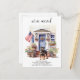 Anuncie sua mudança para familiares e amigos com nosso anúncio de mudança patriótico com uma linda pintura em aquarela de um cão Rottweiler, casa moderna com uma porta azul e a bandeira americana orgulhosamente exibida no alpendre. Este anúncio é perfeito para amantes de cães e qualquer pessoa que deseje anunciar seu novo endereço. Com seu esquema de cores vermelho, branco e azul, este anúncio é uma ótima maneira de mostrar seu amor pelos EUA enquanto compartilha suas notícias emocionais. Deixe todos saberem que "Nós nos mudamos!" e convide-os a visitar e conhecer seu melhor amigo em sua nova casa. DIREITOS AUTORAIS © 2023 Judy Burrows, Black Dog Art - Todos os Direitos Reservados. Cartão de Anúncio de Mudança Personalizado Patriótico com Cão Rottweiler