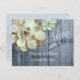 Plantas lindas e succultas + grãos de madeira falsa em tons de cinza azulada desenhados no casamento personalizado Salvem os Cartões-postais. Papel de papelaria botânico exclusivo que você pode personalizar totalmente para seu CASAMENTO RÚSTICO DE PAÍS | CASAMENTO BOTÂNICO MODERNO OU CASAL FORA DA PORTA! Sinta-se livre para alterar as tipfaces, cores e tamanhos do texto também. ((Você pode encontrar os essenciais de casamento e favores nesta loja, Bridal Heaven. Entre em contato com ujean4791@gmail.com para obter trabalho personalizado e/ou coordenar papelaria de casamento.)