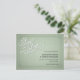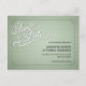 Este convite chic, ainda moderno, tem um tom sutil, verde suave, que destaca elegantemente a tipografia simples. Projetado exclusivamente para Zazzle, este convite de casamento diz romance puro! O cartão de convite e resposta também está disponível.Adicione um carimbo de casamento Envelopes da nossa extensa coleção de correio para corresponder perfeitamente ao seu convite. Envelopes, invólucros de envelopes e invólucros Pocket® estão disponíveis como um complemento (à direita) através de zazzle.com