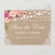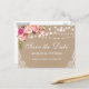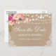 Luzes de Corda Rústica Kraft Piscando Aquarela Cor Rosa Escorregada Floral Salve a Data Cartão-Postal - Impresso de Volta