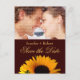Casamento Salve o cartão postal de Data com fotografia de girassol. Personalize-o com os detalhes do seu casamento e insira a sua própria fotografia. Você pode facilmente alterar a cor, a fonte, o tamanho e a posição do texto clicando no botão personalizar.