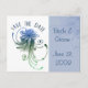 Salve o cartão postal com flores azul e verde. Adicione facilmente seu nome e datas à frente e detalhes no verso. Cartaz rápido e fácil para avisar a todos sobre seu evento especial!