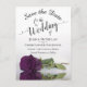 Cartão Postal De Anúncio Salvar a Data do Casamento com Rosa Roxa Ameixa Re