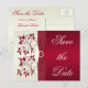 Cartão Postal De Anúncio Salvar a data floral vermelho e marfim