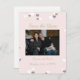 Um fundo rosa claro com corações flutuantes espalhados em vários tamanhos. A fonte dourada acentua este cartão postal de salvar a data com foto. Adicione sua imagem e personalize com todas as suas informações.