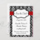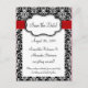 Um design de fundo damasco preto e branco elegante e sofisticado, com fita vermelha e moldura branca. Um convite de casamento fofo e uma coleção de conjuntos combinando. Todos os Designs Copyright © www.CustomInvitesOnline.com