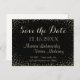 Este cartão postal de salve a data com um fundo estrelado dourado parece formal e divertido e pode ser personalizado para quase qualquer ocasião.