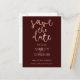 Salve o Dia falso Rose dourado tipografia mármore Coleção de Convite de Casamento. Envie seu cartão de salve o dia com moderna, simples, elegante e sofisticada tipografia de letra à mão com pincel falso rose dourado em um fundo burgundy vermelho. Perfeito para casamentos simples, elegantes e modernos.