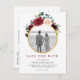 Cartão postal fotográfico Salve o Data Floral Rústico Boho Vermelho Burgundy Marinho com aquarela. Perfeito para um casamento outonal. O design apresenta um magnífico buquê de flores / rosas burgundy / Marsala, pêssego e marinho com folhas combinantes em uma moldura dourada em forma de anel. Encontre mais designs e variações correspondentes na minha loja "blissweddingpaperie". E não hesite em entrar em contato comigo para qualquer pedido personalizado.