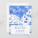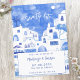 Uma pintura aquosa moderna da cidade pitoresca de Oia, na ilha grega de Santorini, para celebrar seu amor com um toque de elegância e beleza. Inspirados pelas impressionantes vistas da ilha, esses convites apresentam uma pintura aquosa mesmerizante de Oia em tons azuis e brancos sonhosos. Perfeito para um casamento de destino, estes convites vão dar o tom para o seu dia especial e garantir que os seus hóspedes estão a contar os dias para a sua comemoração inesquecível na Grécia. Arte original de Nic Squirrell.