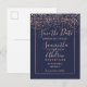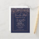 Cartão Postal De Anúncio script azul do marinho confetti do rosa gold salva