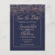 Rosa gold confetti marinho azul tipografia casamento salvar data