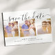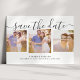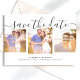 Cartão Postal de Anúncio de Salvar Data com Script de Assinatura e Três Fotos.