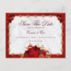 Esta elegante salvação da data do cartão postal apresenta um quadro simulado de borda metálica vermelha e com joias douradas, acentuado com rosas, com dentro de fundo branco de satin na moldura. Veja o resto da elegante suíte de casamento floral vermelho e dourado na coleção.