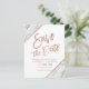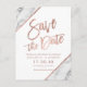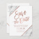 Cartão Postal De Anúncio script rosa gold marble branco salvar a data