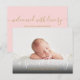 Com mensagens elegantes em script, esses cartões de anúncio de nascimento são perfeitos para contar a todos as novidades. Personalize a frente com a foto e o nome do seu bebê. O verso apresenta uma bela mensagem em script junto com sua mensagem pessoal de agradecimento e estatísticas de nascimento. Desenhado por Thisisnotme©