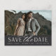 Um cartão postal moderno para guardar a data projetada para acomodar a sua foto favorita de noivado horizontal ou orientada à paisagem. "Save the date" (Salvar a data) aparece por baixo da sua foto em caracteres brancos e em letras de guião, com seus nomes, data do casamento e local do casamento por baixo. Cartões postais inversos para mostrar os detalhes adicionais da data, incluindo o site do casamento, com seu endereço de retorno e espaço para o endereçamento do destinatário.