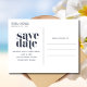 Guarde os cartões postais de casamento para o casamento de destino da praia num simples design de praia com tinta azul. Adicione os detalhes do casamento à frente e atrás do cartão postal - envie um e-mail para amigos e familiares pedindo que reservem sua data de casamento.