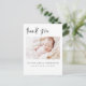 Simples Obrigado Colagem Elegante de Fotos que tem uma foto na frente e 4 Fotos na parte de trás. As cartas contêm uma tipografia cursiva escrita moderna, escrita à mão, que é elegante, simples e moderna para ser usada por um bebê recém-nascido ou por uma menina enviada pela mãe e pelo pai da criança criança para a família e os amigos.