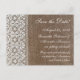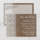 O tema simples burlap e renda é ótimo para um casamento rústico, ao ar livre ou no campo. Imagem texturizada e áspera de burlap contrasta com a renda suave e delicada. Copyright © www.CustomInvitesOnline.com