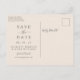 Este cartão postal de salvar a data do casamento simples e elegante inclui uma foto para personalizar com texto creme em um fundo azul empoeirado. O verso é taupe com texto cinza. Este faz parte da coleção Autumn Romance que pode ser visualizada clicando no link acima.