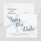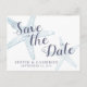 Cartão Postal De Anúncio Starfish Beach Wedding Dusty Blue Salve a data