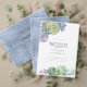 Fontes únicas, suculentas coloridas em aquarela e fundos cintilantes em um tom azul suave e empoeirado são os destaques destes produtos de casamento para combinar. Este cartão postal de "Save the Date" de casamento fornece um modelo para adicionar seus próprios nomes, data de casamento e mensagem em um formato fácil para correio de devolução. Um padrão brilhante e texturizado, em tons claros e escuros de azul empoeirado, adiciona um fundo contrastante no verso. Pesquise ID515 para ver todos os produtos correspondentes deste conjunto.