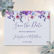 Estes cartões salve a data apresentam suculentos roxos e plantas de aquarela. Eles fazem parte de uma coleção que inclui uma gama de cheios de convites de casamento e artigos de papelaria, como cartões de resposta, cartões de informação, etiquetas de endereços, autocolantes, programas e muito mais. Visite as páginas de coleta em nossa loja para ver a faixa de cheios de itens que você pode personalizar para o seu casamento.