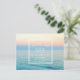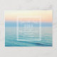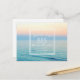 Um belo céu pastel ensolhou sobre o casamento da praia da design de água do oceano azul, salve os cartões postais. Uma maneira amigável de pedir aos seus amigos e familiares que reservem sua data de casamento. Personalize o cartão com a data do casamento, os nomes e a localização da sua cerimônia de casamento. Adicione seu endereço de retorno à parte traseira dos cartões postais.