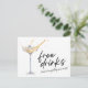 Brinde à sua história de amor com nosso Save the Date de casamento em copo de champanhe de Drinks Grátis! Este design sofisticado apresenta uma taça de champanhe atraente, completa com um anel cintilante, e a frase divertida "Drinks Grátis (e Estamos Nos Casando)" elegantemente exibida na frente. Ele captura perfeitamente a alegria e o entusiasmo da sua celebração que se aproxima!