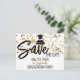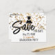 Envie o anúncio de "Save The Date" para uma festa de formatura com uma borda superior de confete dourado. Personalize o texto da frente e de trás nos campos do modelo, remova o texto ou edite usando a ferramenta de design para selecionar um estilo de letra, tamanho e cor de sua preferência.